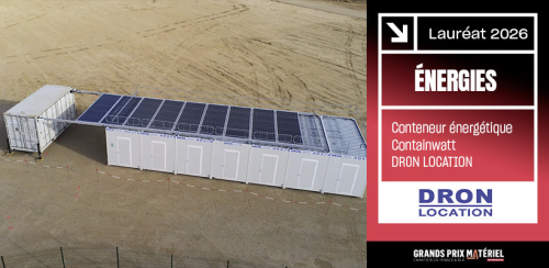 Le loueur s’est associé à Monkilowatt, une entreprise spécialisée dans le solaire mobile, pour proposer à son catalogue Containwatt, un conteneur de 20 pieds qui contient 45 panneaux photovoltaïques prêts à couvrir le toit d’une base vie de chantier. L’installation ne requiert pas de matériel lourd. Les panneaux sont fixés sur des rails horizontaux. Pour compléter ce dispositif, Containwatt abrite également une batterie de 40 kWh pour stocker le surplus d’électricité généré par les panneaux, un groupe électrogène de secours de 9 kVA, une cuve d’alimentation en eau claire et une autre pour la récupération des eaux noires.